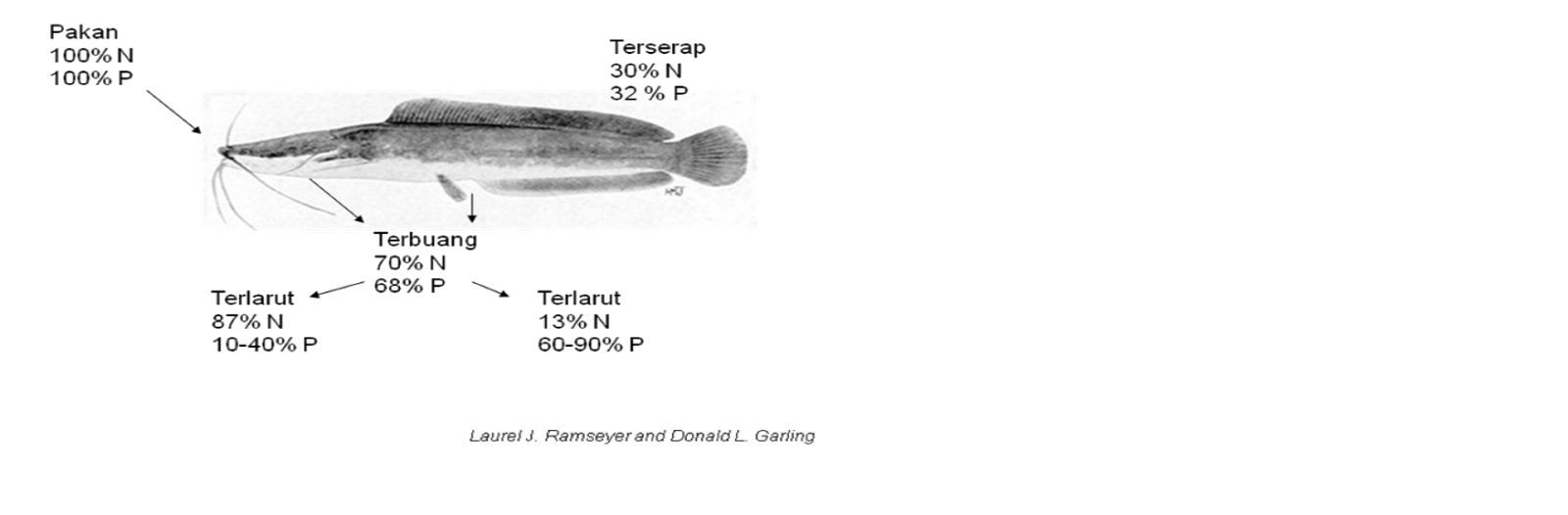 Dari pakan yang dimakan ikan, dihasilkan C organik, N organik, P organik yang