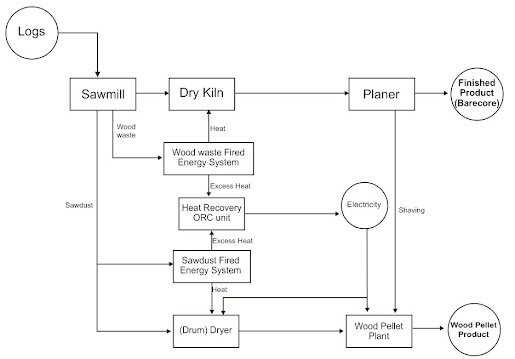 tertentu sehingga bisa digunakan untuk produksi wood pellet. Skema konfigurasi pembangkit listrik ORC dan