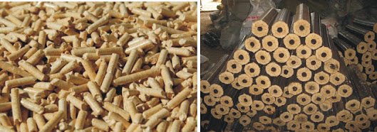 Proses produksi wood pellet dan wood briquette dari kayu limbah rami tersebut juga sama seperti pengolahan dari bahan baku kayu limbah lainnya. Kayu limbah tersebut selanjutnya dikecilkan ukurannya (size reduction) seukuran serbuk gergaji selanjutnya dikeringkan dan setelah itu dipadatkan baik untuk produksi wood pellet maupun wood briquette. Alat proses produksi wood pellet dan wood briquette memiliki banyak kesamaan, hanya pada alat pemadatannya saja yang membedakan, wood pellet dengan pelletiser dan wood briquette dengan briquetting machine. Briket pada umumnya juga lebih padat dibandingkan dengan pellet, yakni bisa mencapai 1,4 ton/m3 sedangkan wood pellets berkisar 650-700 kg/m3. Kayu limbah yang bersih dari kulit juga menjadi bahan baku berkualitas tinggi, hal ini membuat kadar abu sangat kecil bahkan bisa digolongkan ke wood pellet jelas premium apabila kadar abu kurang dari 1%. Pembersihan kulit (debarking) atau dekortikasi pada proses pembuatan rami itulah yang membuat limbah kayunya bersih atau terbebas dari kulitnya yang memiliki kandungan abu besar. Ditinjau dari sudut pandang produsen wood pellet, limbah kayu rami inilah yang dicari, karena tidak perlu lagi membersihkan kulit kayu (debarking) yang menyebabkan kandungan abu tinggi dan menjadi tahapan proses tersendiri.