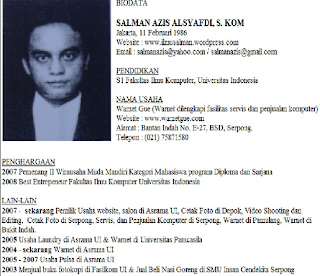 Cukup bermodal berusaha dan kreatifitas, bukan uang. Pengusaha warnet ini bernama Salman Aziz Alsfadi. Bisnis tanpa modal dibuktikan oleh pria bernama Aziz  Bermula dari jualan nasi goreng hingga buku foto kopian, bisnis Salman pun mulai berkembang ke mana- mana.