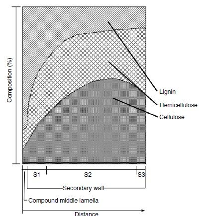 hemicellulose, celullose dan lignin. Hemicellulose berkontribusi pada